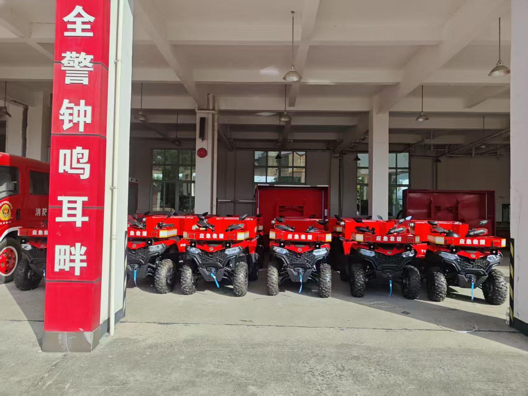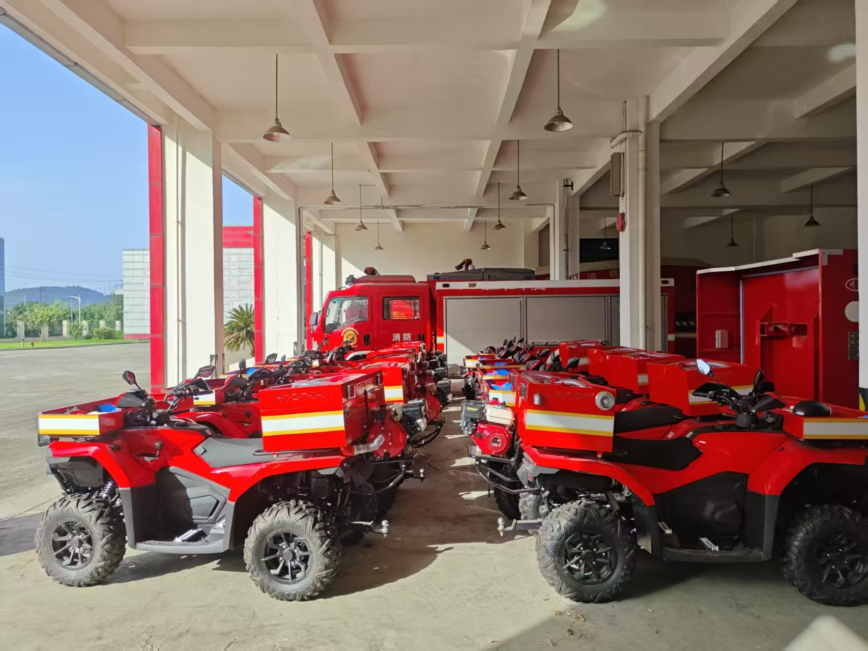 本次配发的全地形消防摩托车配备了警报器、警示灯、水带水管、消防泵等消防器材,具备灵活机动、方便快捷、操作简便等性能,能在狭小街巷、村落小道、农村山地、森林林场等地形复杂的环境中行驶,将显著提升初期火灾控制能力,有效缓解因消防通道受限大型消防车无法进入的困境。