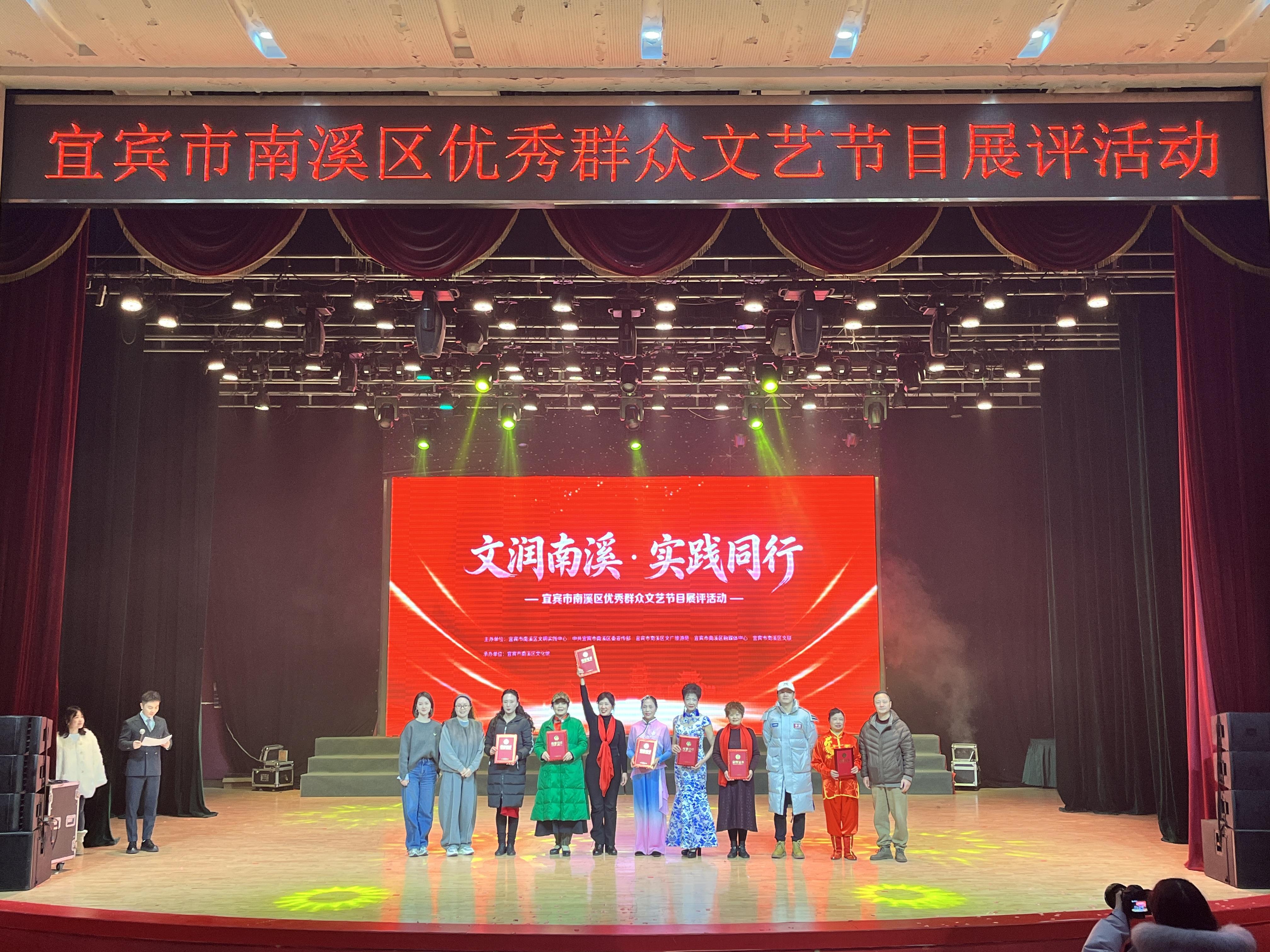 本网讯(记者 吴洁 毕泽钰)12月31日,“文润南溪・实践同行”—— 宜宾市南溪区优秀群众文艺节目展评活动在区演播大厅圆满落幕。本次活动由南溪区新时代文明实践中心、区委宣传部、区文广旅游局、区文联联合主办,区文化馆承办,旨在贯彻落实党的二十大精神及省市区相关会议部署,集中展现南溪民间文艺社团风采,提升文艺创作水平,丰富群众精神文化生活,为和美南溪建设注入文化动能。