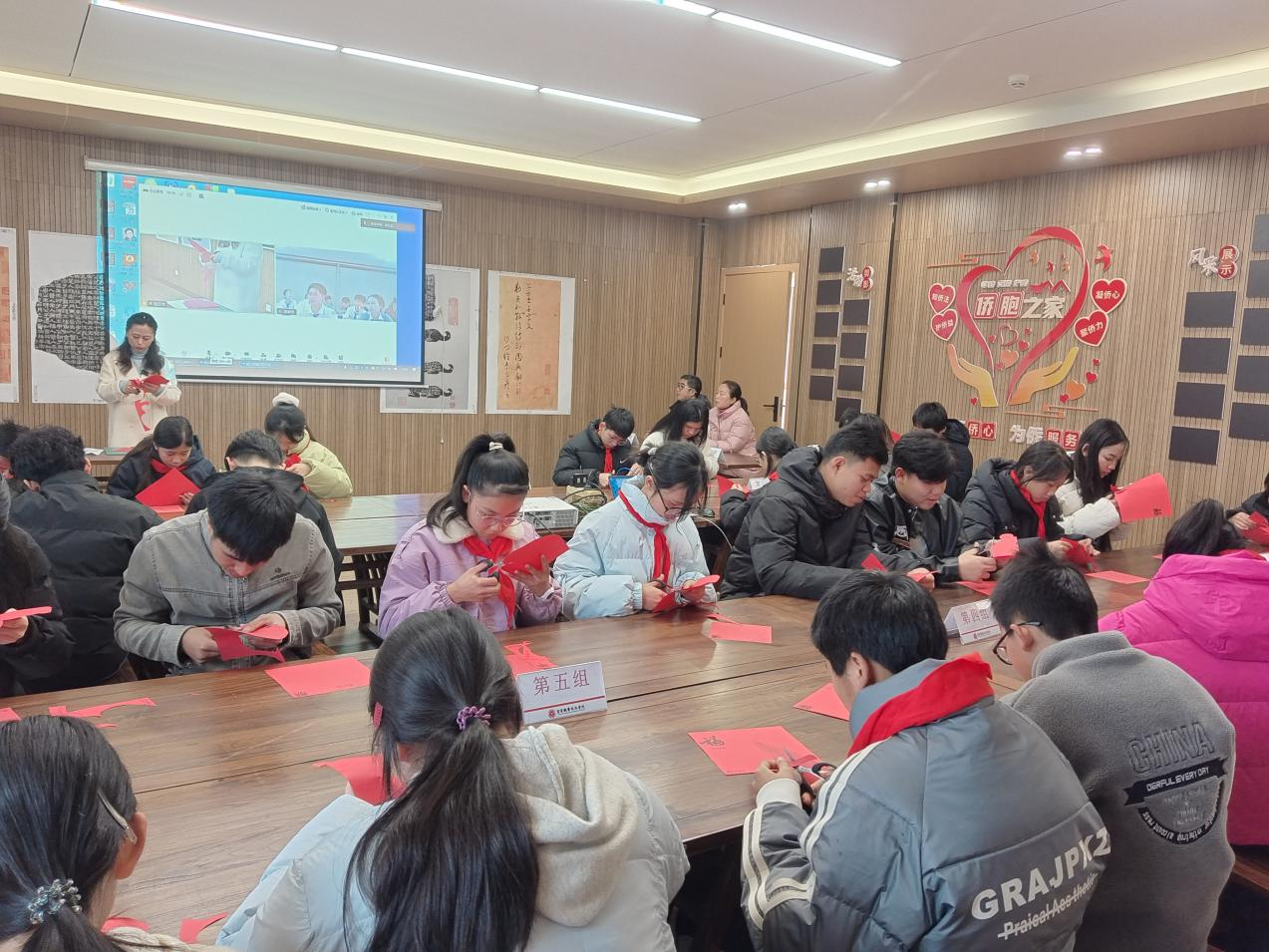 活动中,师生们参观了宜宾职业技术学院“侨胞之家”文化展示区、交流活动空间等特色区域。线上交流环节,宜宾职业技术学院老挝留学生分享了在南求学的感悟、所领略到的南溪美景、品尝到的南溪美食;桂溪中学学生介绍了校园书法比赛、非遗体验等特色活动;老挝万象中学学生介绍了校园文化和节日习俗,屏幕两端提问互动不断,笑声与掌声跨越山河。传统文化交流环节,中老师生共同观看了春节非遗主题视频,剪纸、春联、年画等非遗技艺,生动解锁中国年俗的文化密码;随后桂溪中学学生与老挝留学生混合编组,在专业老师的悉心指导下,手持剪刀专注创作剪纸作品——福字、生肖纹样等作品。老挝万象中学学生也线上展示了本国传统手工艺,以技艺交流拉近距离、深化文化共鸣。