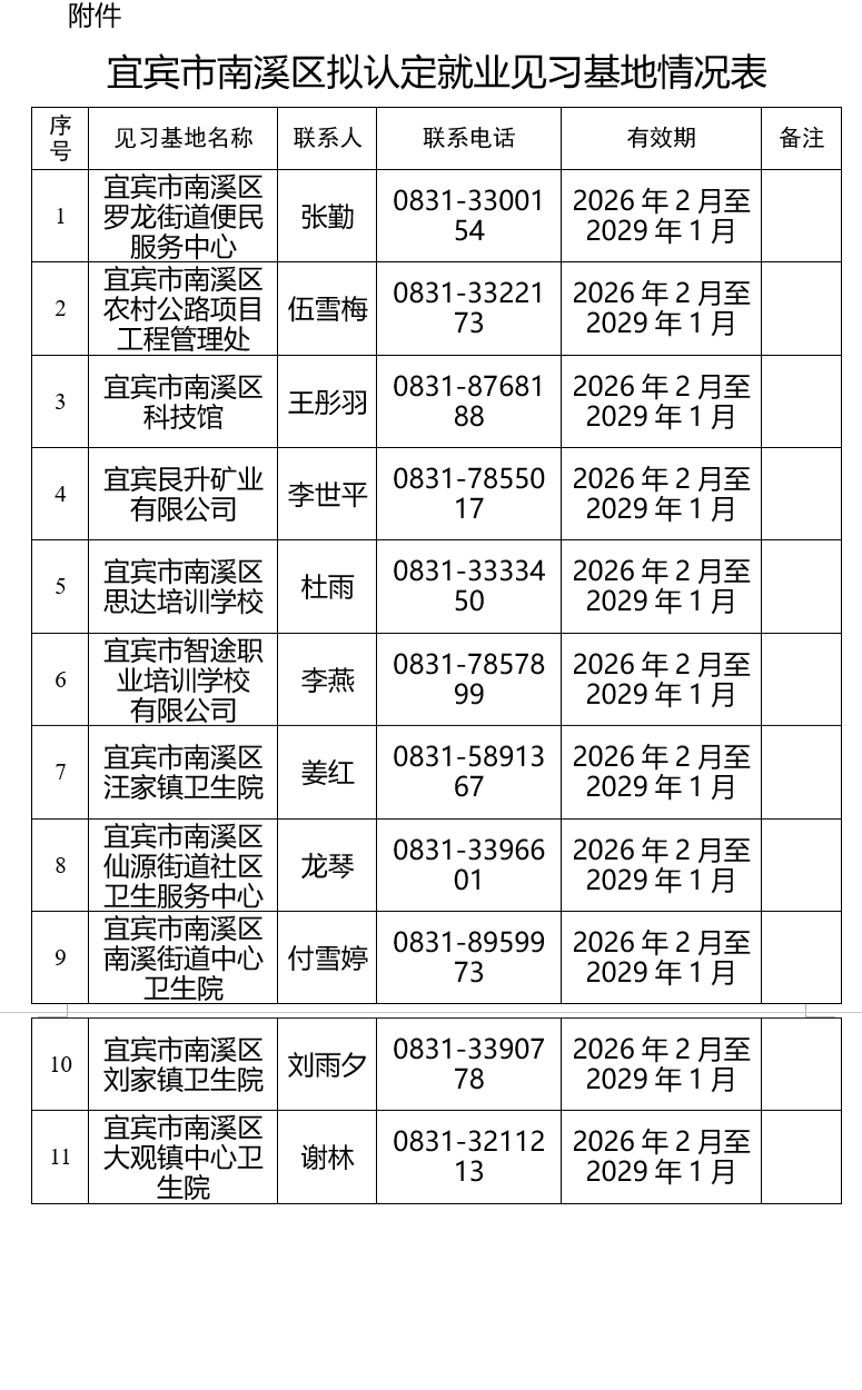 宜宾市南溪区人力资源和社会保障局关于拟认定宜宾市南溪区罗龙街道便民服务中心等11家单位为南溪区就业见习基地的公示