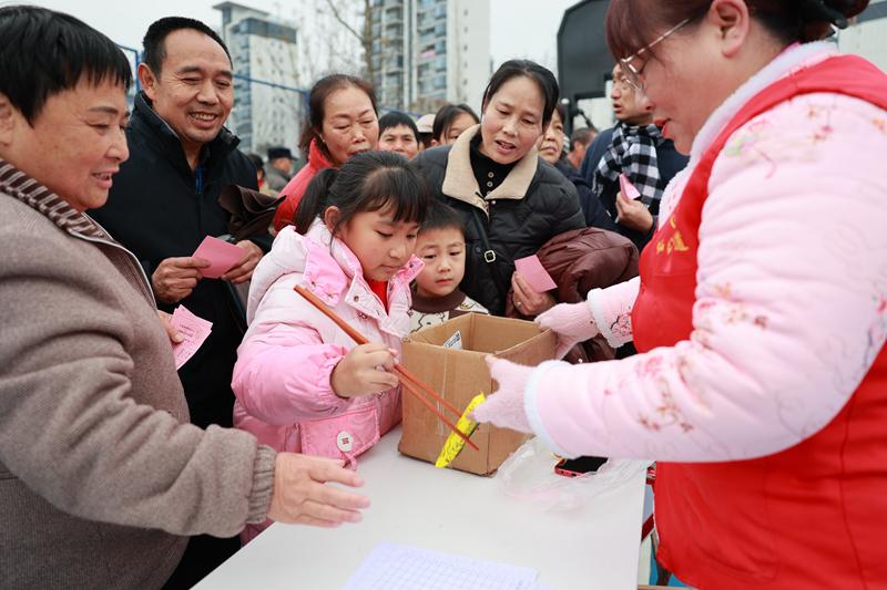 随后,丰富多彩的趣味游戏同时启动。不管是知识性与趣味性并存的快问快答、考验协作的“脖子传水果”、寓教于乐的猜灯谜、传统雅趣的投壶、巧手比拼的“筷子夹零食”、寓意吉祥的“财源滚滚”,还是拼技巧与幸运的套圈、大转盘活动,都受到了居民们的青睐。大家手持游园卡,踊跃参与各项游戏,在欢声笑语中收集印章兑换礼品,收获满满的节日喜悦。参与群众严世香高兴地告诉记者:“今天我参加川主社区的活动,各个项目都开展得很好,耍了龙灯,打了腰鼓,大家都觉得开心,你看那么多人,像过新年的氛围。”