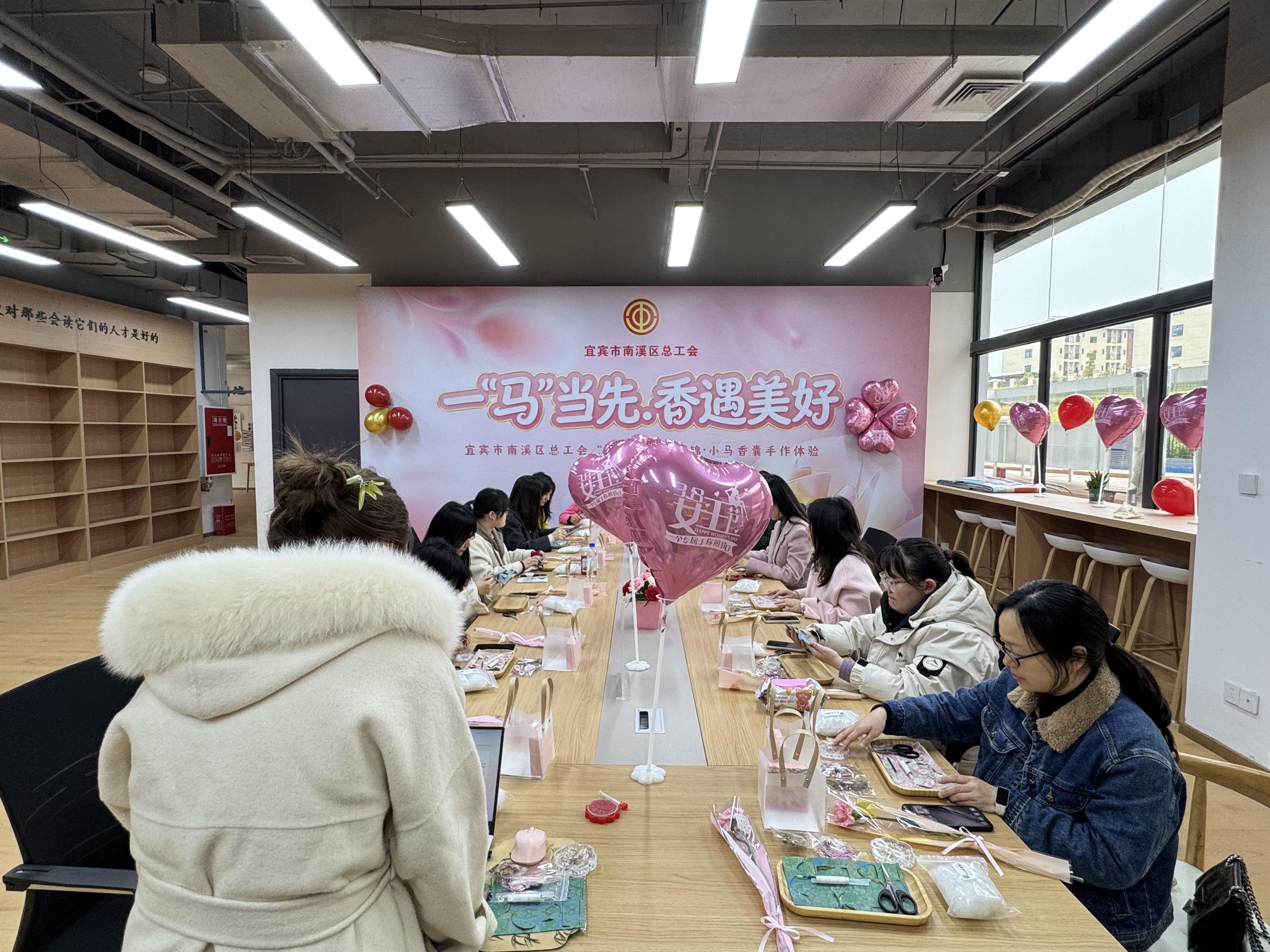 为庆祝“三八”国际妇女节,丰富女职工精神文化生活,传承非遗文化,3月6日,南溪区总工会举办“三八”非遗宋锦小马香囊手作体验活动,以指尖匠心致敬巾帼风采,以文化浸润凝聚奋进力量。