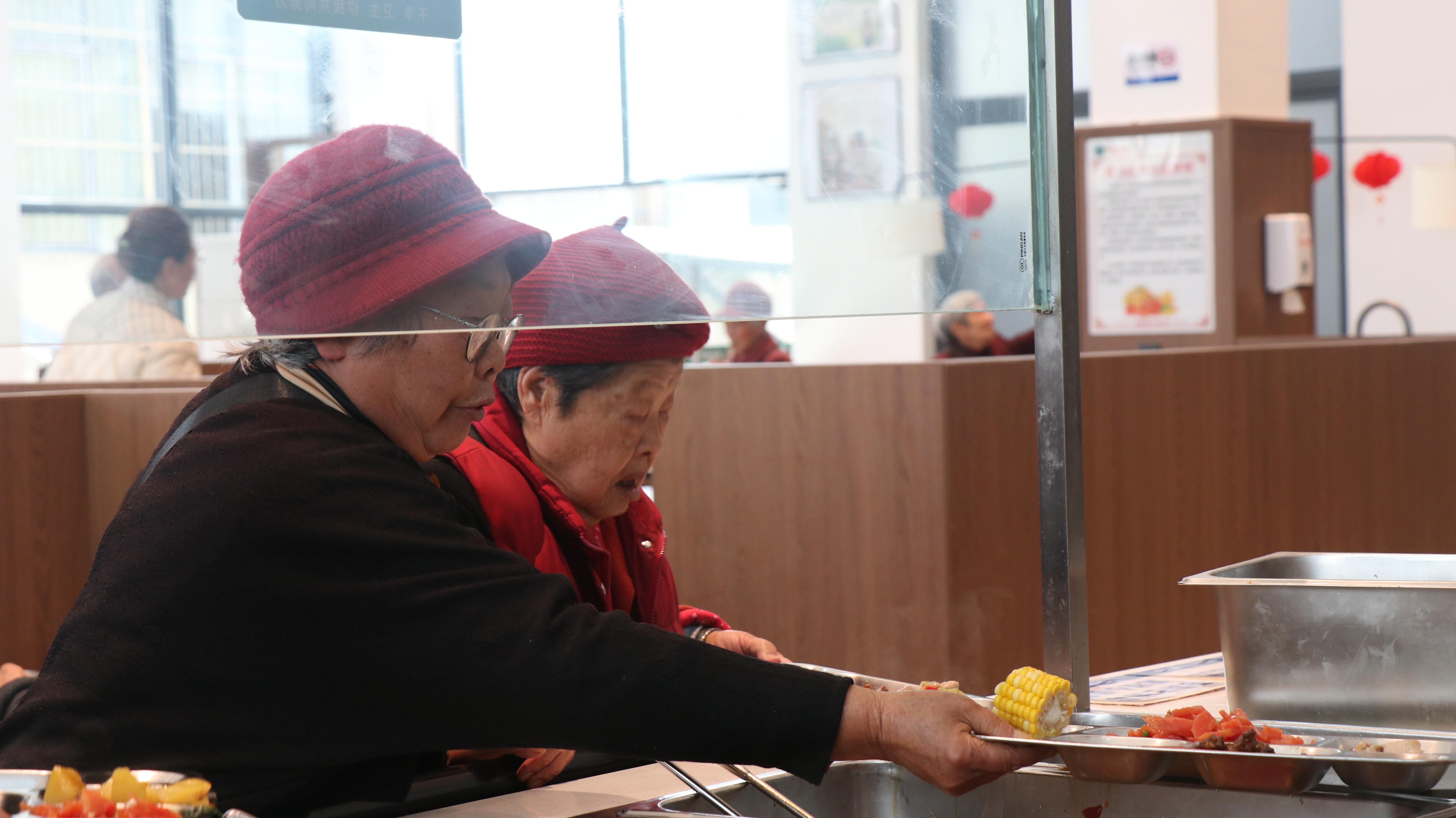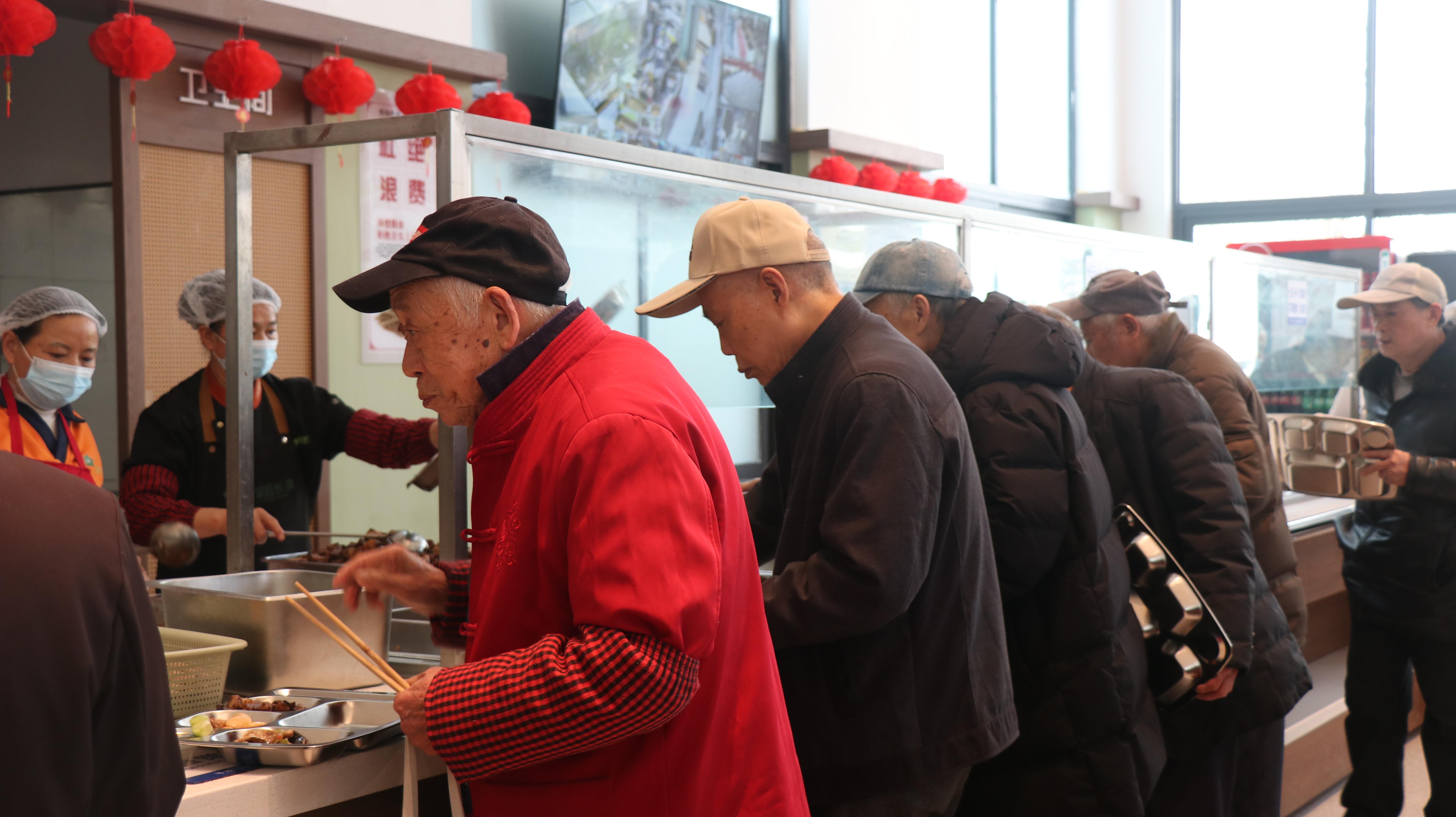 走进共享食堂,后厨环境干净规范,工作人员正有条不紊地开展食材清洗、切配、烹制等工作。就餐区内布局整洁舒适,老人们有序排队取餐、围坐交谈,温热的餐食香气四溢,处处洋溢着温馨祥和的烟火气息。