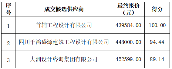 四川省黄沙河南溪区段防洪治理工程勘察设计服务采购已于2026年03月23日进行竞争性磋商活动,评审工作已结束,现对本次磋商的评审结果公示如下。