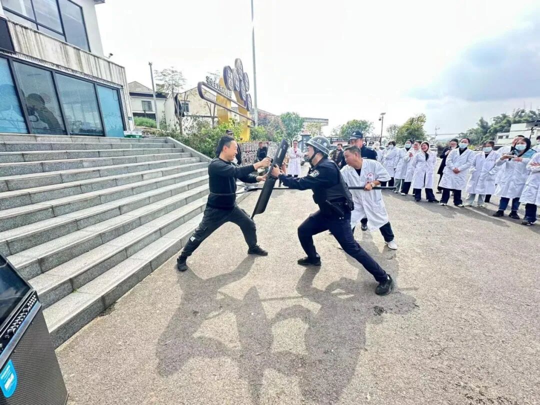 三是应急处突:侧重突发事件处置、秩序维护,强调“快速响应、稳控局面”。镇派出所民警通过场景模拟演练场景,演示了处突小组携带防暴盾牌、钢叉等装备赶赴现场的过程,通过喊话警告、战术配合,迅速将“滋事人员”制服并带离。