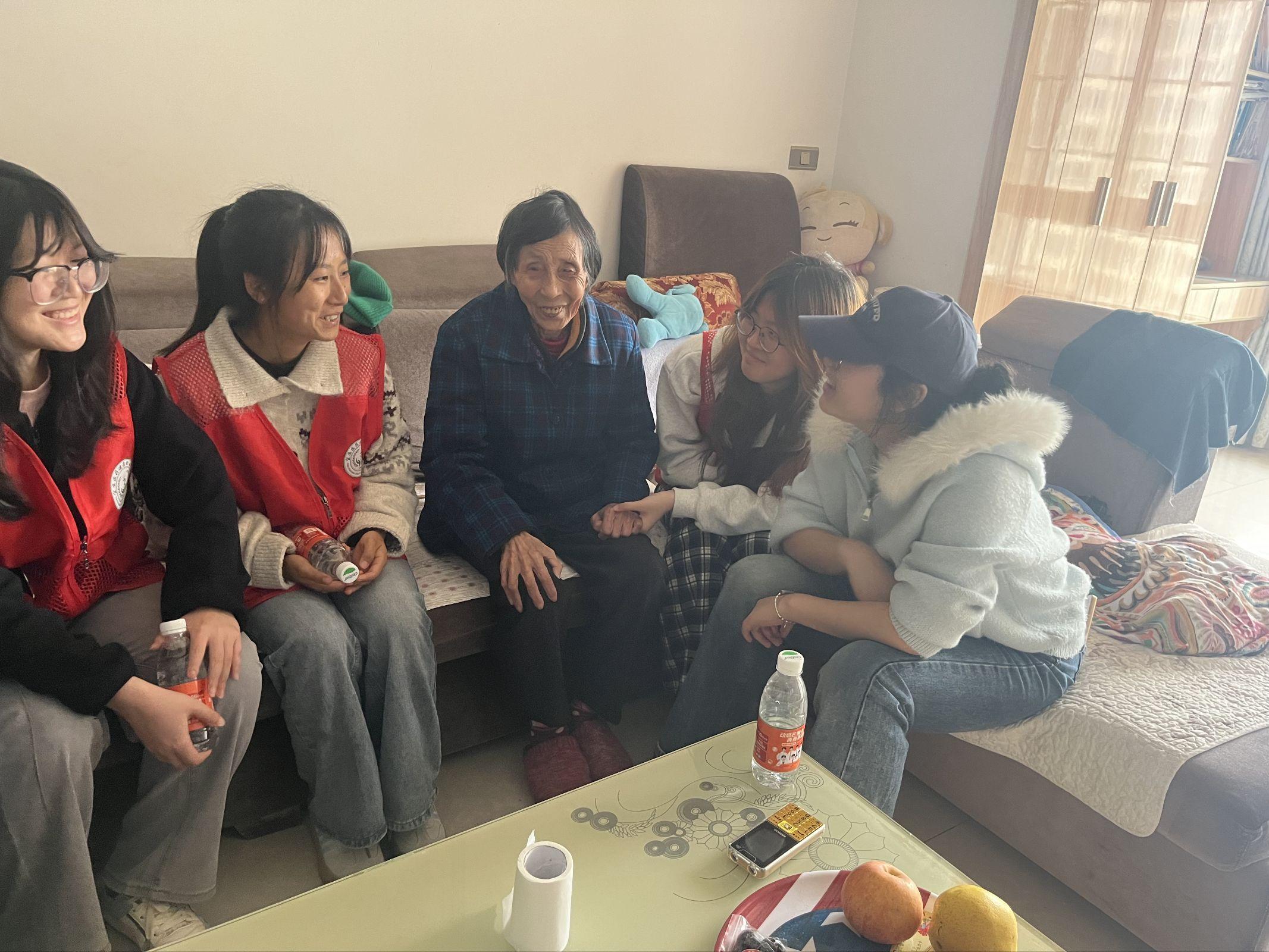 活动当天,大学生志愿者们在社区工作人员的引导下,分组走进服务对象家中,开展“清扫+陪伴+健康”三位一体的志愿服务,用实际行动传递温暖。在留守老人家中,志愿者们主动拿起扫帚、抹布,细致清理屋内卫生、擦拭桌椅,让老人的居住环境变得干净整洁、焕然一新。