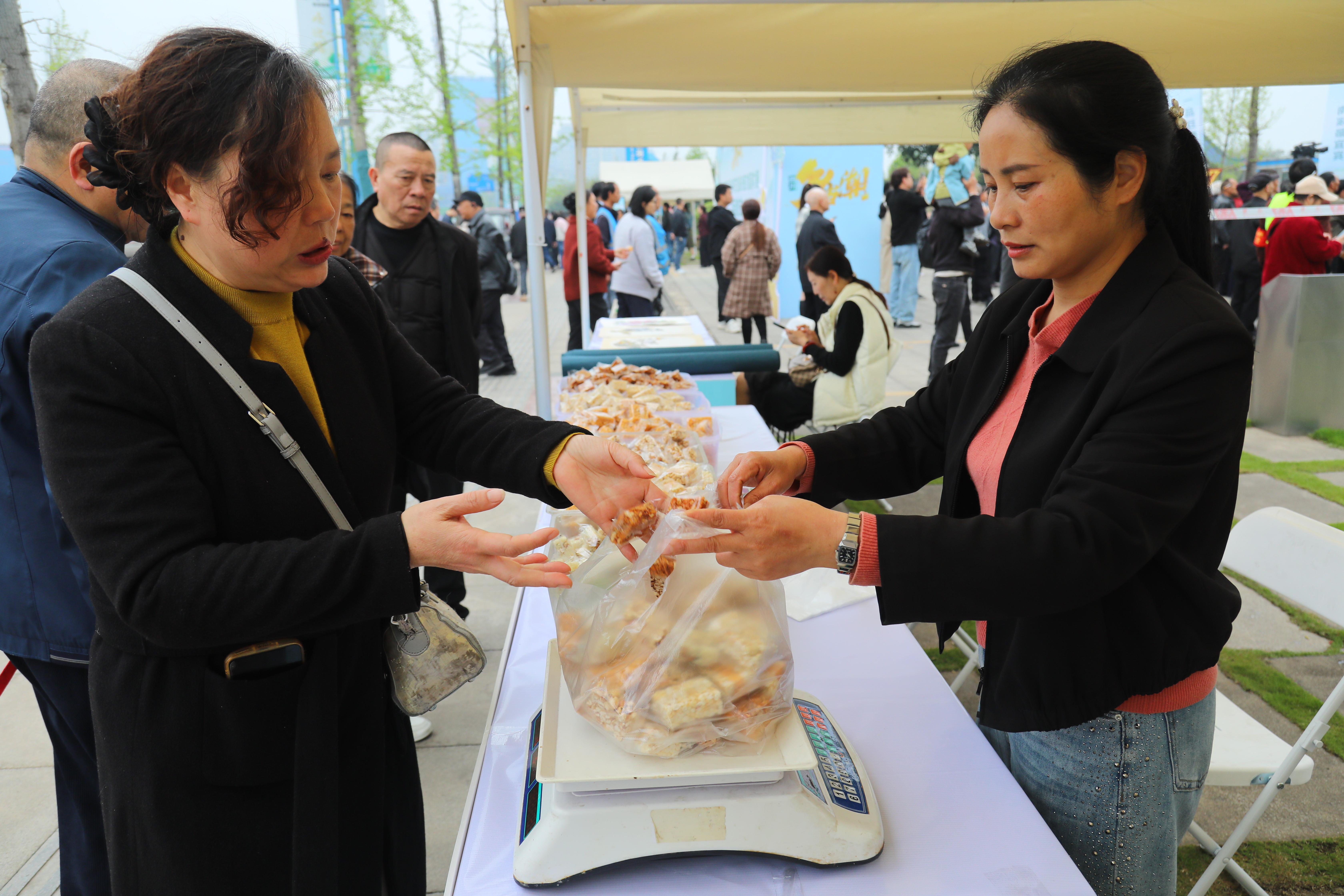 非遗文化展上,各类非遗技艺大放光彩,展现出四川非遗文化的深厚底蕴与独特魅力。传承人们现场展示精湛技艺,吸引了不少游客驻足观看。特色农产品展同样丰富多彩,琳琅满目的产品涵盖了南溪地道美食、特色小吃、农特生鲜等多个品类,游客们纷纷选购,准备将这份“乡村味道”带回家。