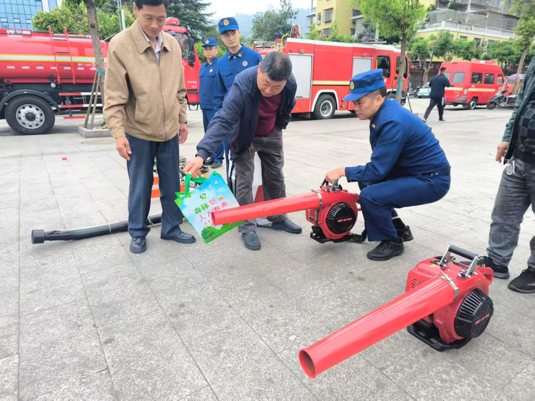 在消防器材展示区,消防救援人员现场展示风力灭火机、高压水泵、便携式灭火装备等专业器材,详细讲解各类器材的功能用途、操作方法和使用场景,手把手指导群众熟悉器材操作要点,让群众直观了解防灭火装备性能,提升应对初期火情的处置能力。