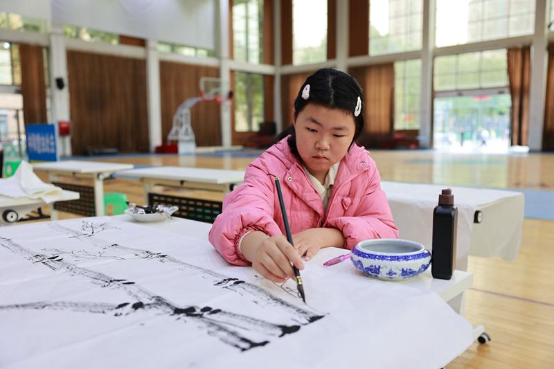 比赛分设中国书法和中国画两大类别,并按学段划分为小学组与中学组进行评选。在中国书法创作环节,选手们需在规定的3小时内,完成一幅指定主题作品与一幅自主选题作品。比赛一开始,选手们便或站或立于桌案旁,宣纸铺展,翰墨润笔,一点一划间尽显功底与匠心。而在中国画竞技现场,小画家们同样争分夺秒,需在3小时内创作完成指定主题画作。他们或工笔细描,或写意挥洒,将传统技法与个人感悟相融合,绘就出一幅幅充满生机与韵味的画卷。