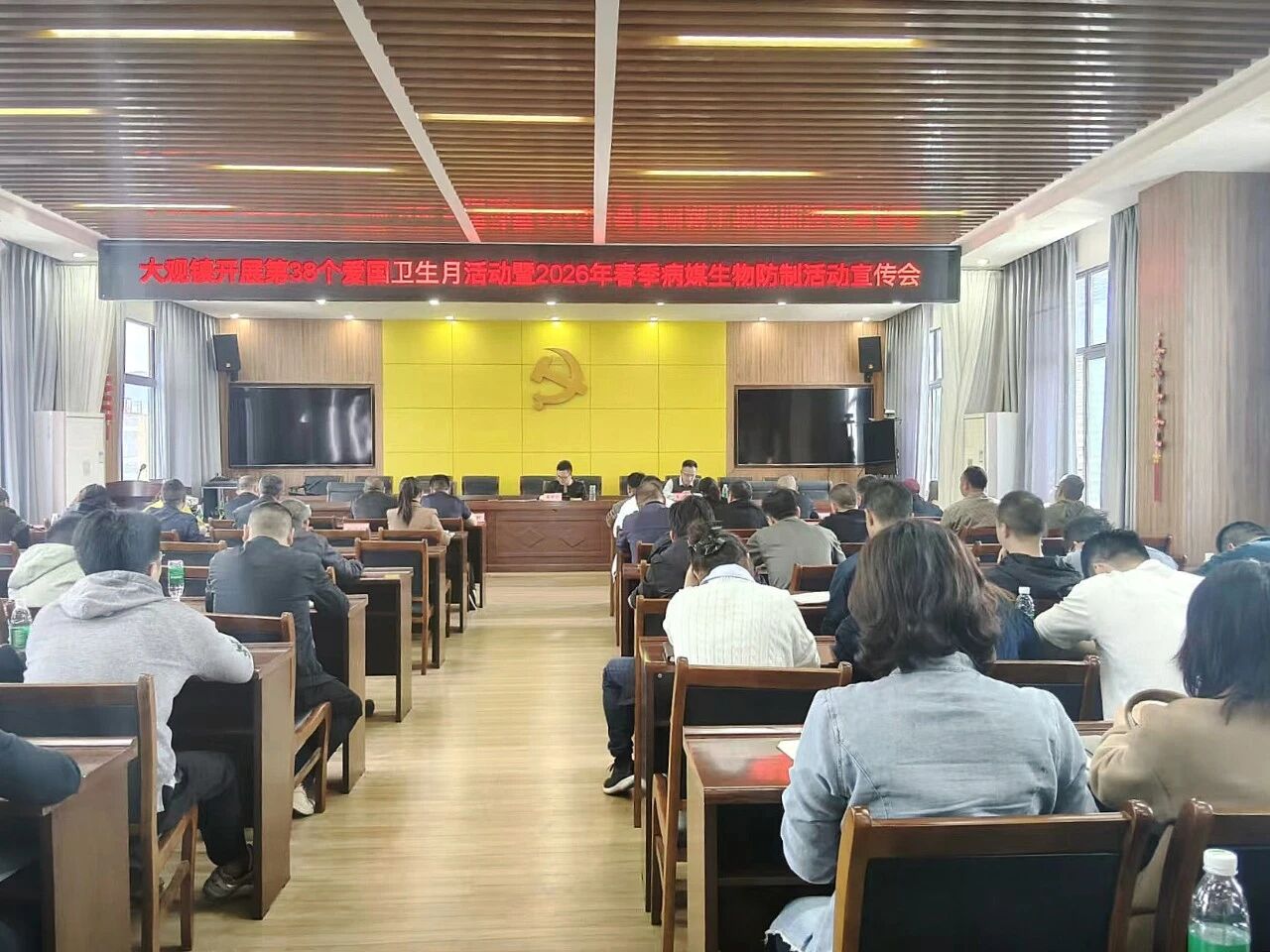 为紧扣第38个爱国卫生月“共建健康城镇 共筑健康防线”主题,扎实推进春季病媒生物防制工作,近日大观镇召开专项宣传会,镇机关干部、村(社区)负责人及群众代表参会。