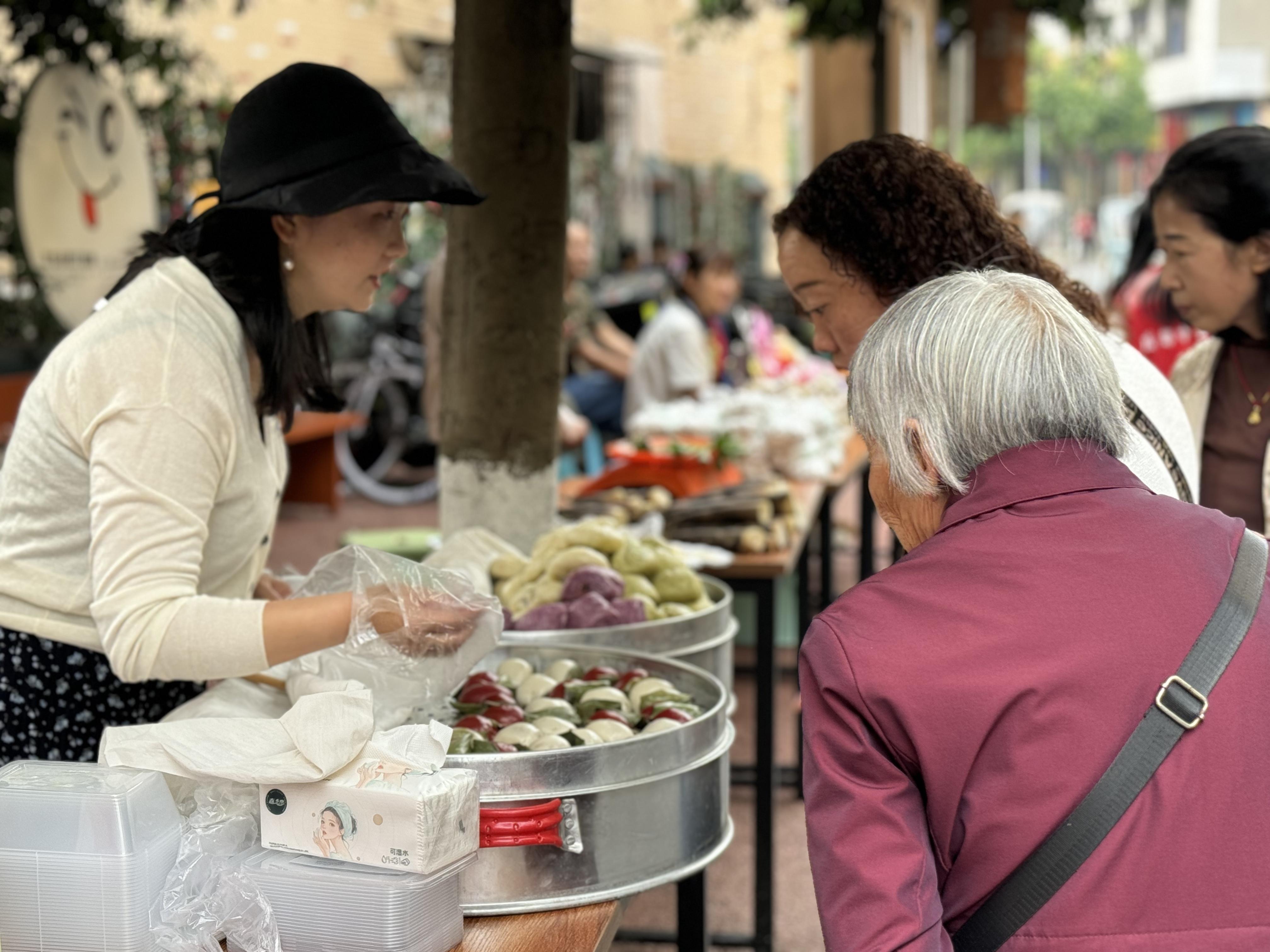 在邻里文创共享区,创意互动与文明实践相融共生。居民们积极参与现场趣味游戏,通过体验互动获得旧物置换资格,将家中闲置物品拿来交换、循环利用,让旧物焕发新的价值,倡导绿色低碳、勤俭节约的文明新风。同时,社区精心打造的各类文创产品集中亮相、现场展售,既充分展示社区特色文化,又有效拉近社区与居民之间的距离,进一步增强社区凝聚力、向心力和居民归属感。