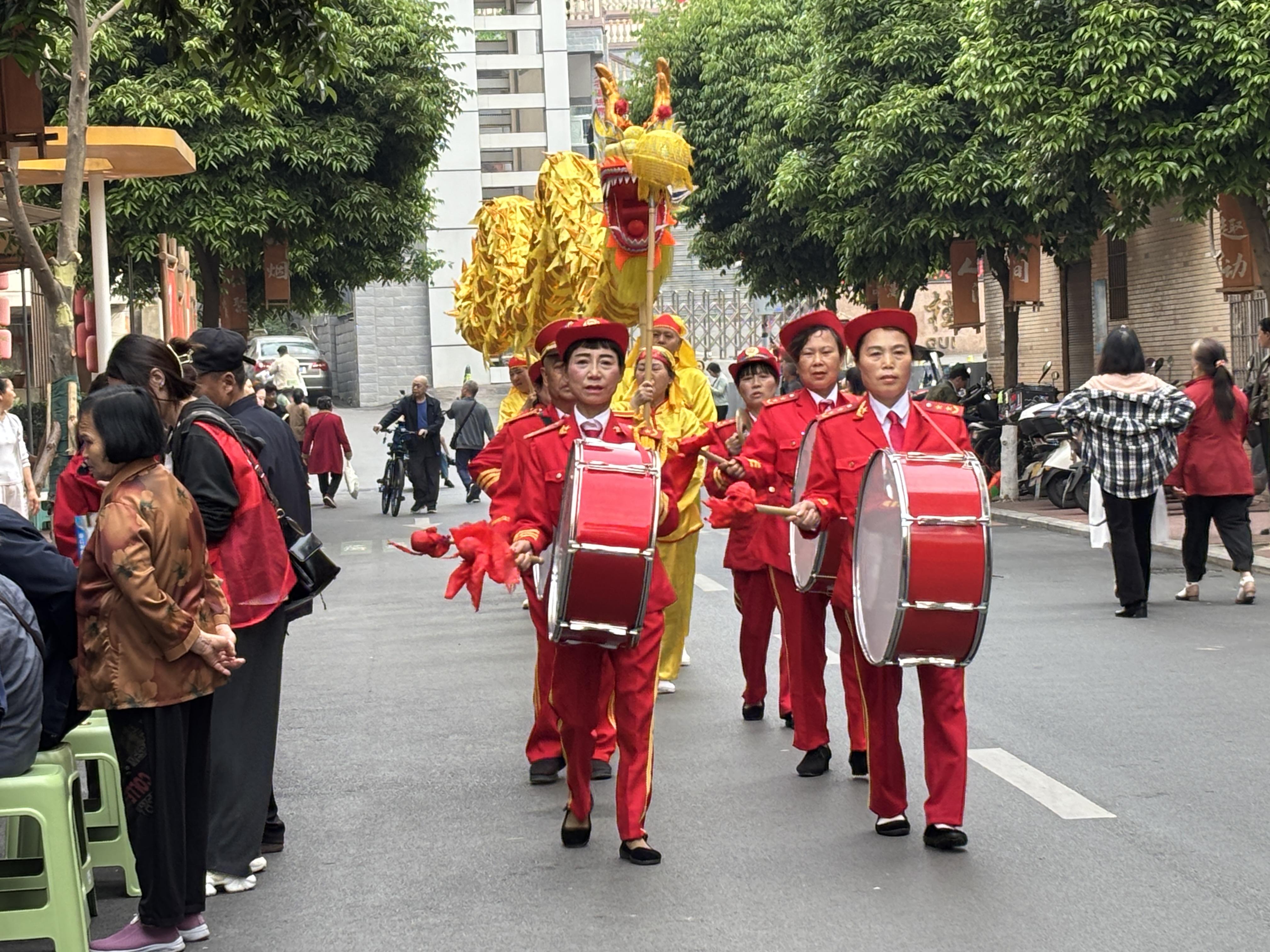 随后,凤溪社区唐书记高声鸣锣,正式宣布:“凤溪大集开市啦!”伴随着铿锵有力的锣声,喜庆热闹的舞龙舞狮队即刻登场,沿着街道欢快起舞、腾跃翻腾,锣鼓喧天、欢声四起,将现场气氛瞬间推向高潮,引得过往居民纷纷驻足观看、拍手叫好。