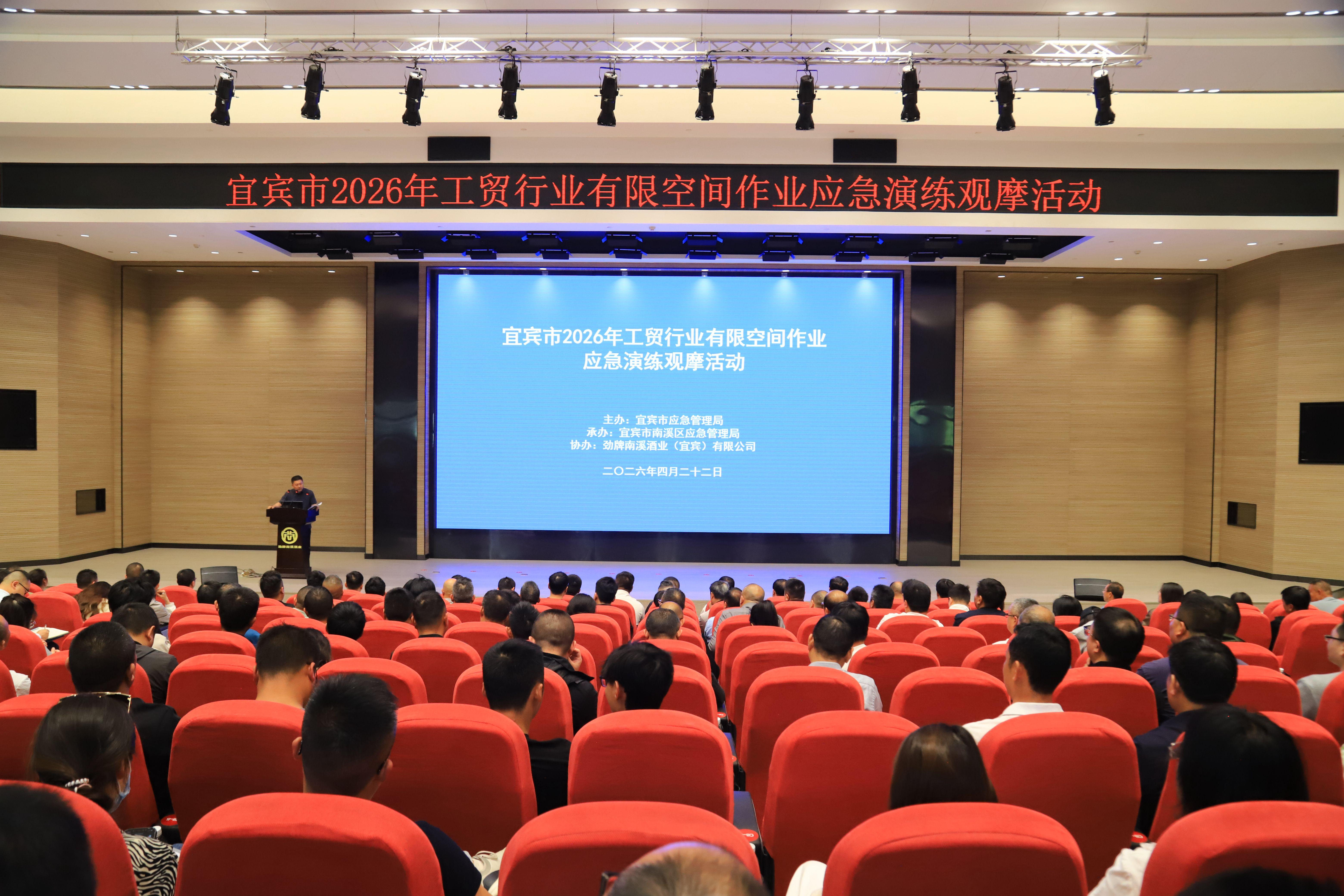 本网讯(记者 吴洁)为深入贯彻落实省、市工贸行业有限空间安全生产专项整治工作部署,深刻吸取有限空间作业事故教训,规范作业流程,提升应急救援处置能力,坚决防范和遏制事故发生,4 月 22 日,宜宾市 2026 年工贸行业有限空间作业应急演练观摩活动在劲牌南溪酒业(宜宾)有限公司成功举办。